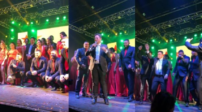 O governador Gladson Cameli voltou a mostrar seu talento como dançarino na noite de sábado (24). Após dançar forró com populares no Senadinho e, depois com o robô do Sebrae na Expoacre 2019, o gestor aproveitou um baile de formatura para dançar algumas músicas com formandos, no Maison Borges, em Rio Branco.