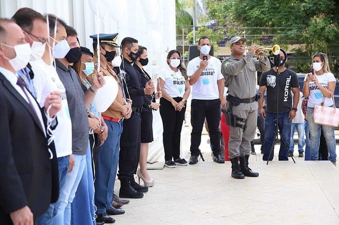 Com as fotos dos 15 profissionais que perderam suas vidas afixadas às paredes do Palácio, a homenagem seguiu com a soltura de balões brancos, orações e o instrumental da Polícia Militar, que entoou, durante um minuto, o Toque do Silêncio, tradicional composição fúnebre que homenageia militares. O secretário de Estado de Segurança Pública, Paulo Cezar Rocha dos Santos, agradeceu o empenho do governador em reconhecer a necessidade de priorização da vacina aos operadores de segurança.