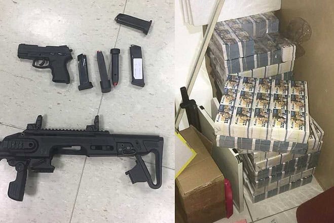 A Polícia Federal apreendeu na casa de um dos investigados pela Operação Santinhos, uma pistola e cinco carregadores, além de um adaptador que aumenta o seu poder de fogo, transformando-a numa espécie de metralhadora.