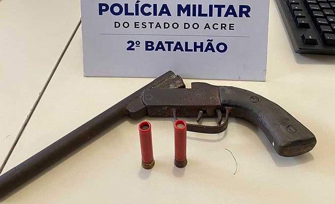 Com a devida autorização, os militares realizaram buscas no local sendo encontrado uma arma de fabricação artesanal calibre 36 municiada. A dupla informou pertencer a uma organização criminosa e que estariam armados para evitar ataque da facção rival.