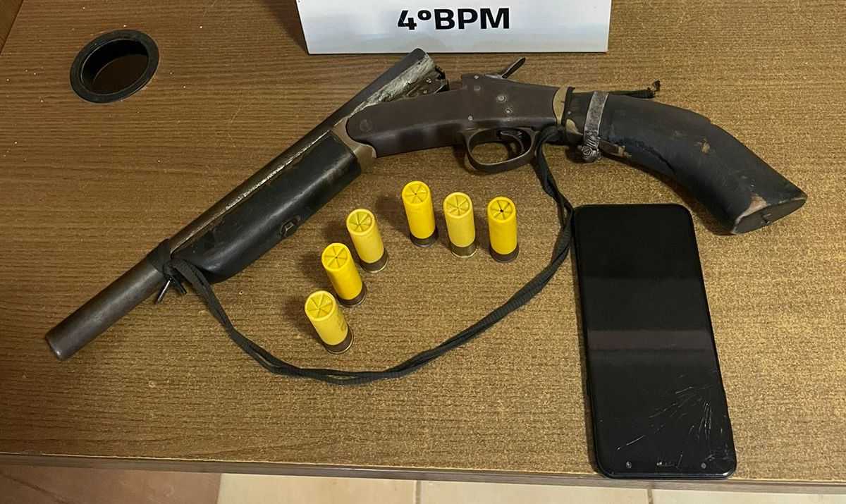 No interior de uma mochila que o homem da garupa transportava, a guarnição conseguiu localizar uma arma de fogo, tipo espingarda calibre 20, com 6 cartuchos intactos. O condutor do veículo informou que era moto táxi e que estaria fazendo apenas a corrida, mostrando inclusive o dinheiro pago.