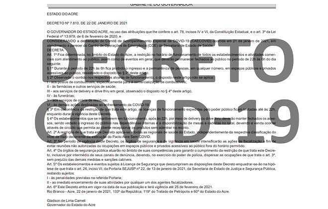 Um anexo especial do Diário Oficial, com a data de hoje trouxe a publicação do decreto 7.810, de 22 de janeiro que determinou o toque de recolher em todo o estado a partir das 22 horas, todos dias, até às 06 da manhã.