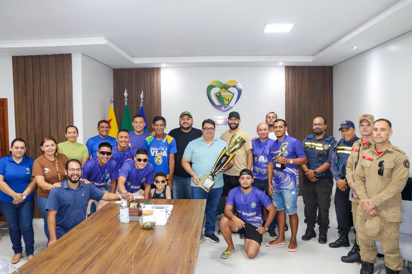 Nesta segunda-feira (29), o elenco campeão foi recebido com honras pelo prefeito Carlinhos do Pelado (PP), que estendeu um tapete azul — cor do clube — na entrada do gabinete municipal. Os atletas ainda percorreram as principais avenidas da cidade em carro aberto, aplaudidos pela torcida, e encerraram a celebração com um banho de mangueira do Corpo de Bombeiros. A conquista reafirma a força do futsal de Brasiléia no cenário esportivo do Acre.