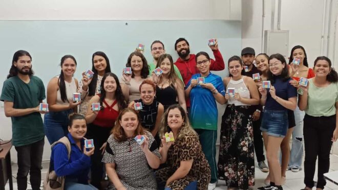 Com o tema, fungos e a convite da professora, dra. Clarisse Maria Carvalho, a equipe da Educação Ambiental, Isadora Rocha, Davi Marques e Débora Santana, esteve no primeiro dia de aula da disciplina de microbiologia, com a atividade, numa dinâmica de boas-vindas aos estudantes.