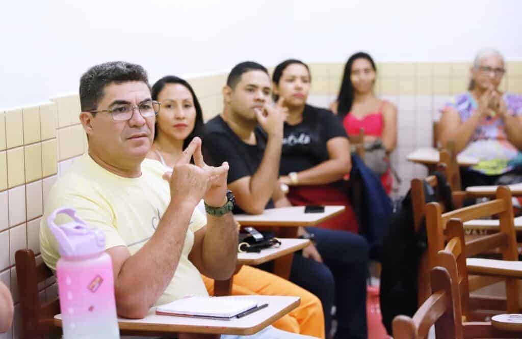 A Secretaria de Estado de Educação, Cultura e Esportes (SEE), por meio do Centro de Apoio do Surdo (CAS), está promovendo um curso de Língua Brasileira de Sinais (Libras) para educadores da rede estadual, entre eles professores do Atendimento Educacional Especializado (AEE), regentes, mediadores, assistentes educacionais e assessores pedagógicos.