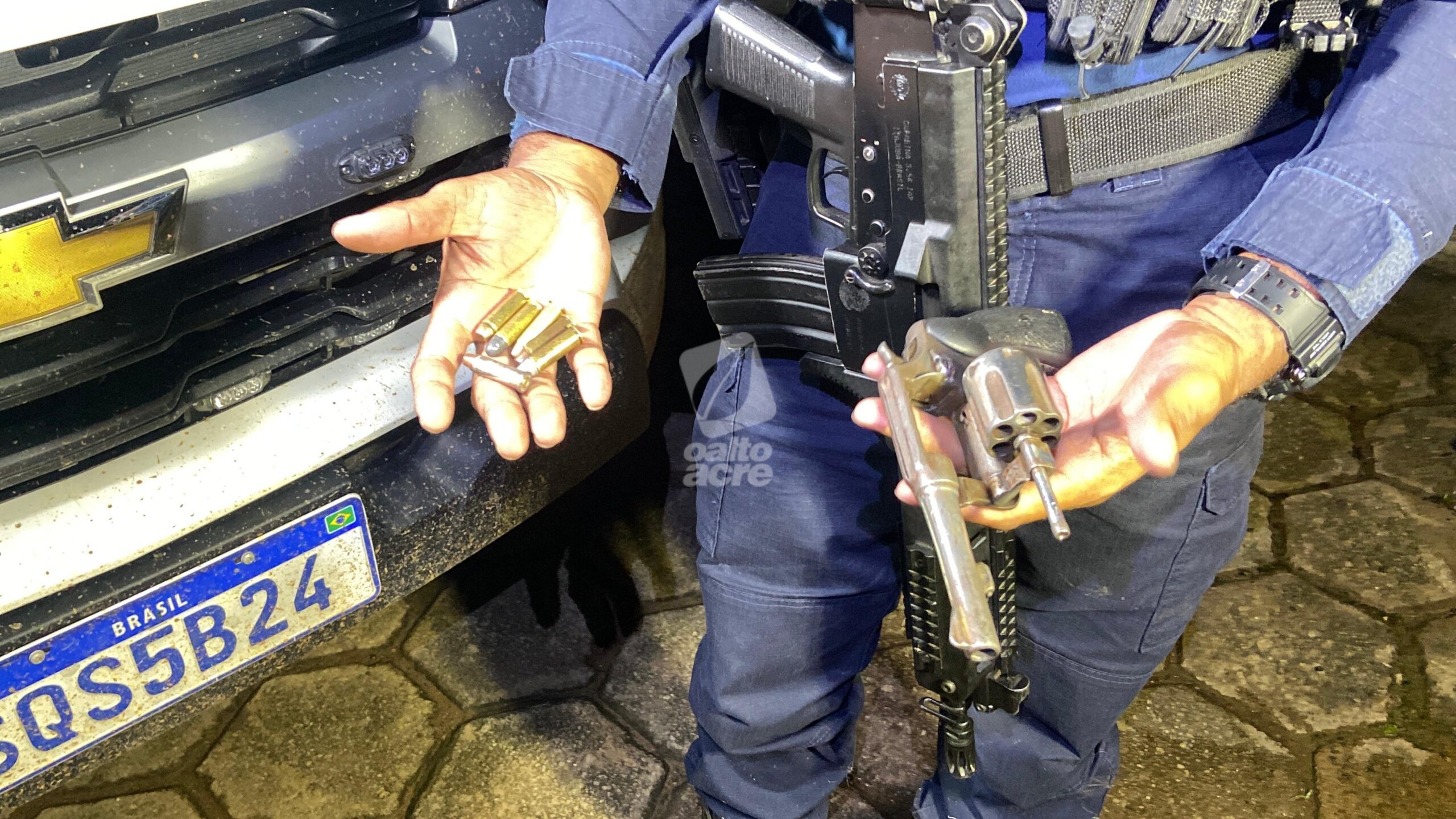 Uma mulher de 55 anos foi presa na noite desta quarta-feira (10) durante patrulhamento da Força Tática do 2º Batalhão, no bairro Belo Jardim 2, segundo distrito de Rio Branco. A guarnição havia recebido a informação de que uma pessoa estaria transportando uma arma de fogo pela região.