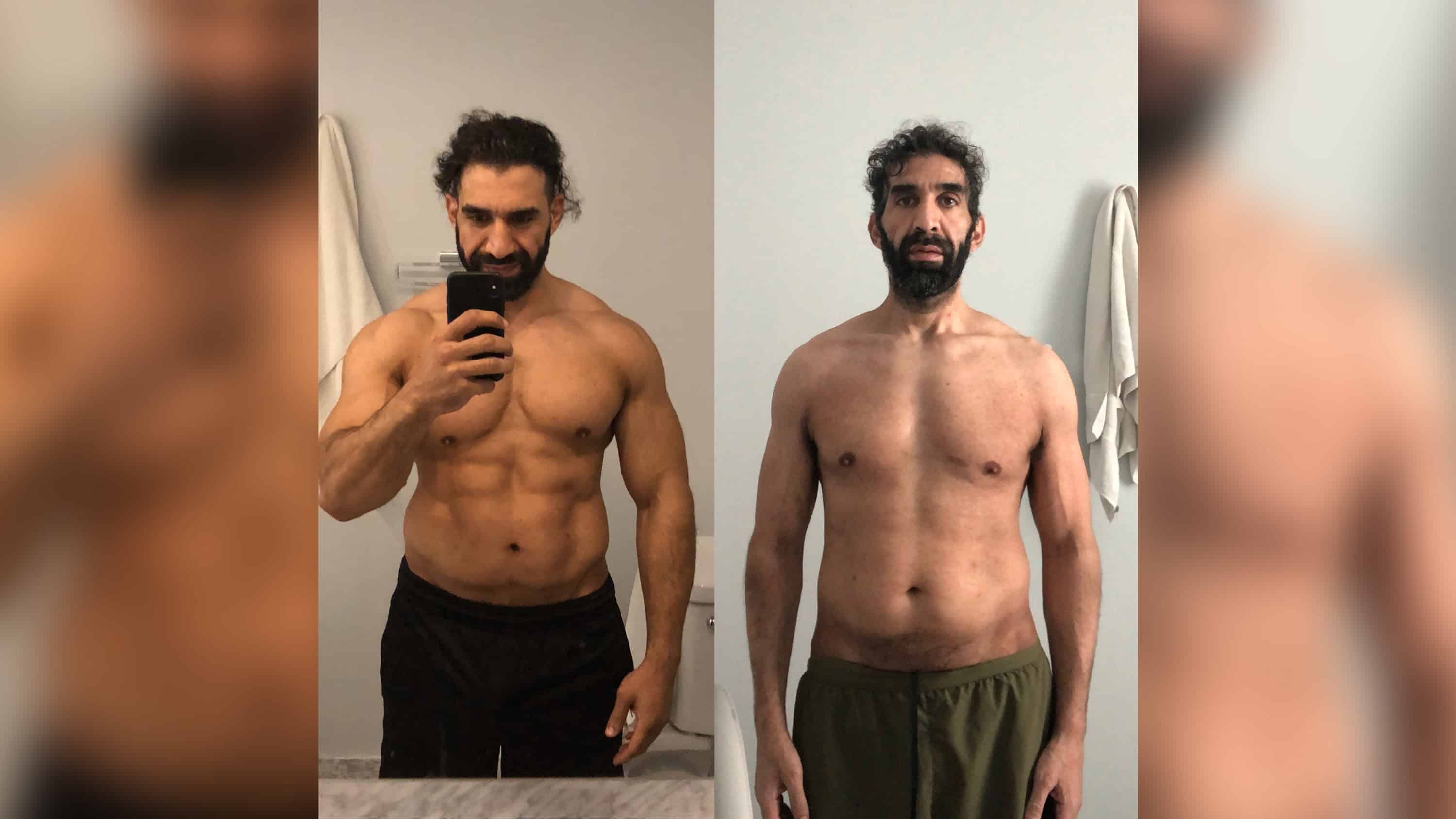 E, ao olhar para baixo, ele não conseguiu se reconhecer. Outrora um atleta pesando 97 quilos, com músculos esculpidos e força espantosa, o homem de 40 anos parecia uma pessoa completamente diferente.
