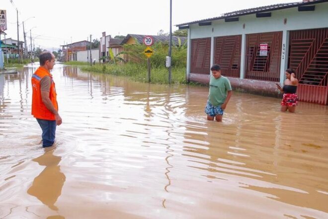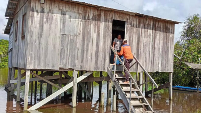 A elevação do nível do Rio Juruá para 14,10 metros mantém o cenário de alerta em Cruzeiro do Sul e tem mobilizado equipes de resgate em diversas áreas atingidas pela cheia. Somente na manhã de sexta-feira (3), cerca de 30 chamados foram registrados para retirada de famílias e vistoria de residências em regiões alagadas.