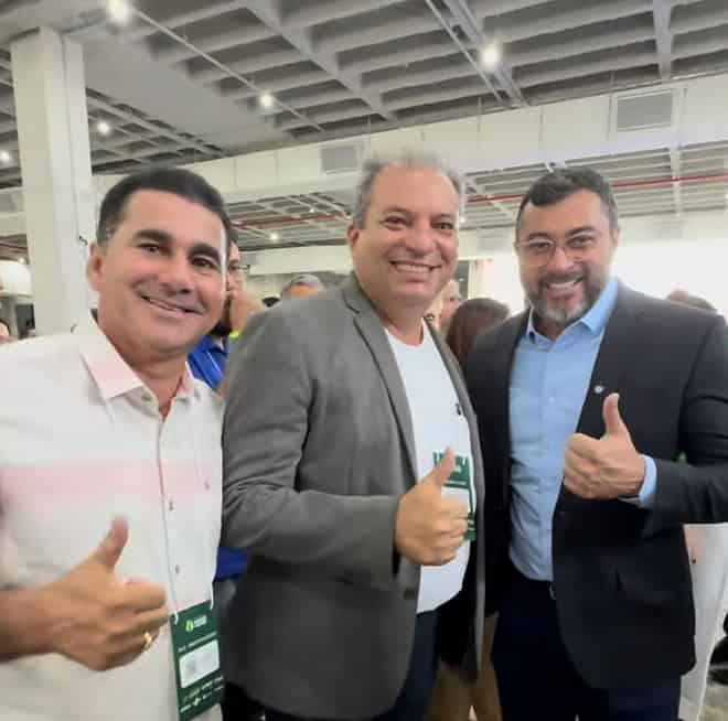 Ivon Rates e James França, prefeito e vice eleitos em Envira (AM), para o quadriênio 2025-2028, participaram nesta quarta feira, 30, no salão Mogno do Centro de Convenções do Amazonas Vasco Vasques, em Manaus, do Encontro Amazonense com os novos prefeitos do Amazonas.