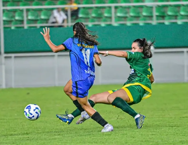 Foto Sueli Oliveira: A zagueira Lorena (d) segue no Galvez para disputa do Estadual