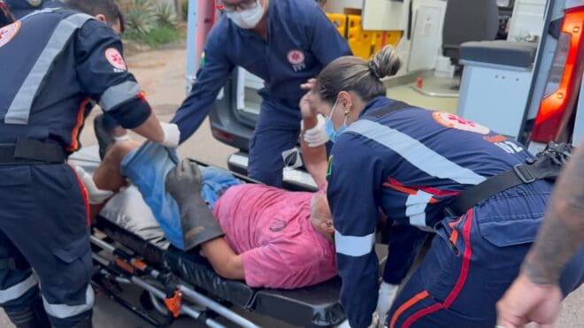Os moradores acionaram o Serviço de Atendimento Móvel de Urgência (Samu), que enviou uma ambulância de suporte avançado. Após os primeiros atendimentos, a vítima foi levada em estado grave ao pronto-socorro da capital, apresentando ainda fratura no punho direito causada pelo impacto da queda.