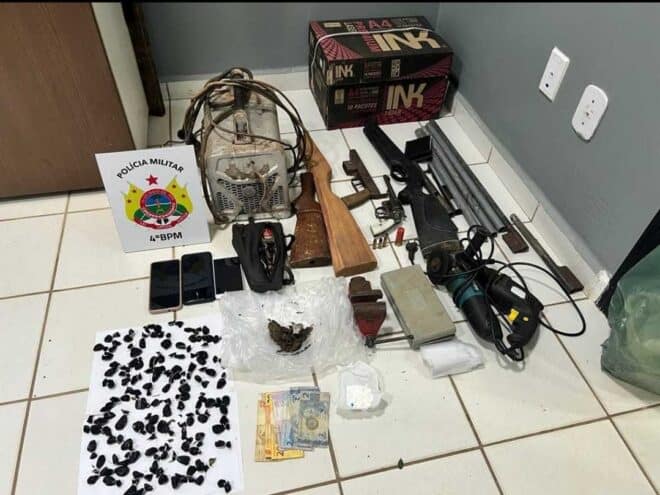 No municipio de Senador Guiomard (Quinari), as Forças de Segurança da cidade desarticularam uma reunião do crime organizado e conseguiram apreender um revólver calibre 38, outra arma de fabricação caseira, além do cano e cabo de três espingardas e material utilizado para montagem delas.