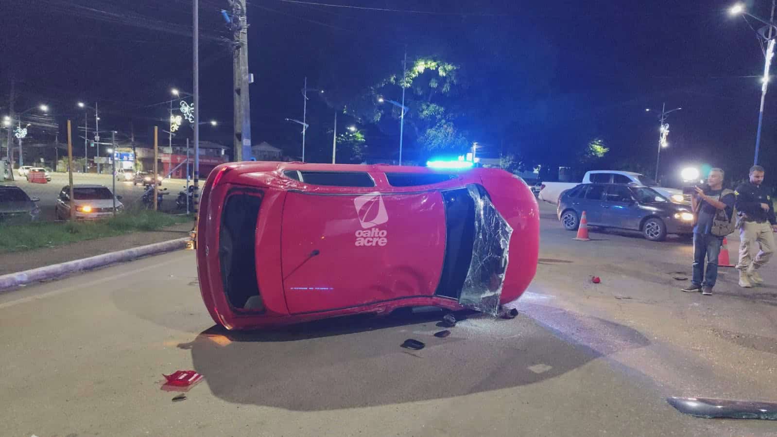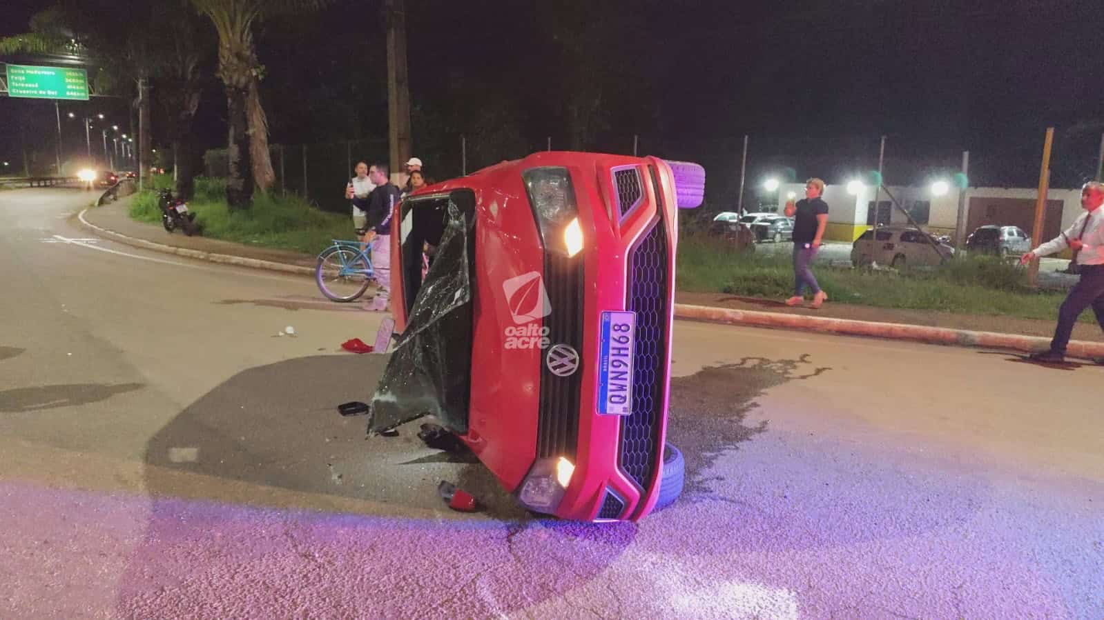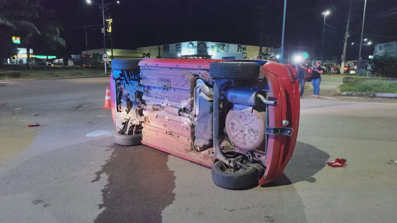 Um acidente de trânsito envolvendo dois veículos deixou duas pessoas feridas e provocou o tombamento de um carro na noite desta segunda-feira (12), na Via Verde, na rotatória da Corrente, trecho da BR-364, no Segundo Distrito de Rio Branco.