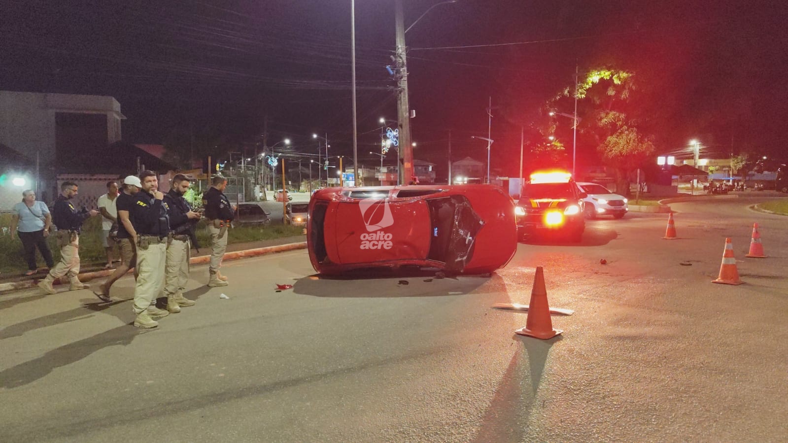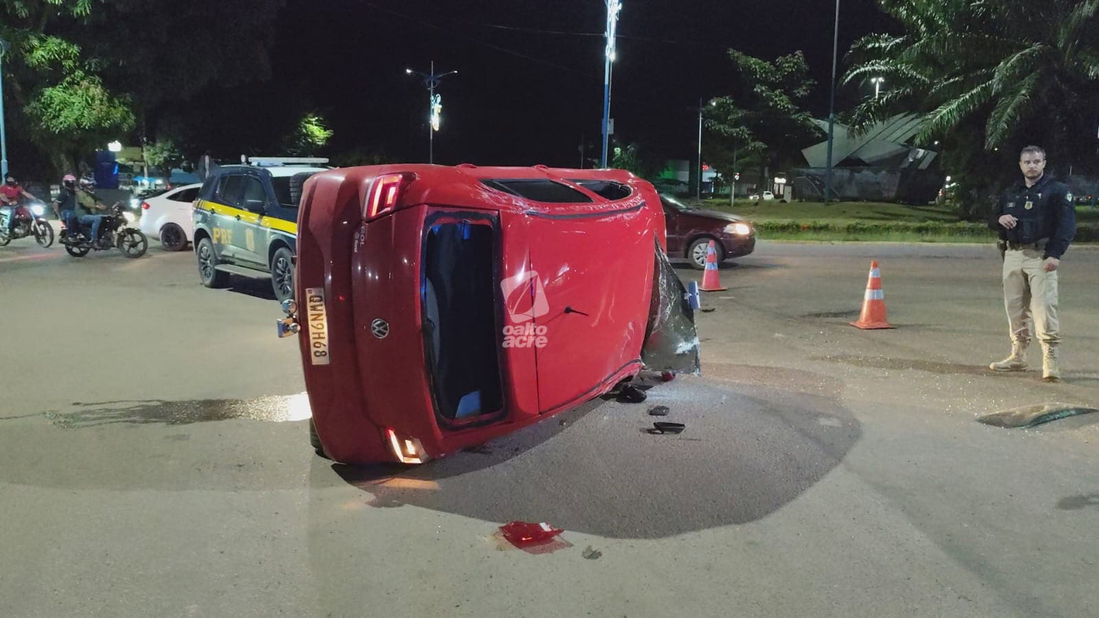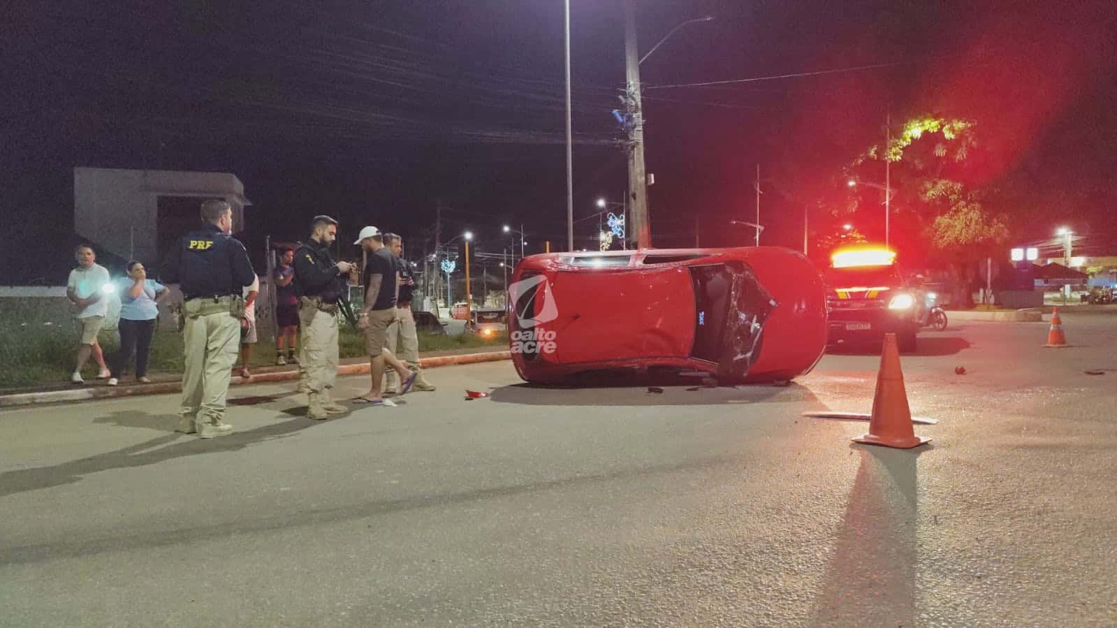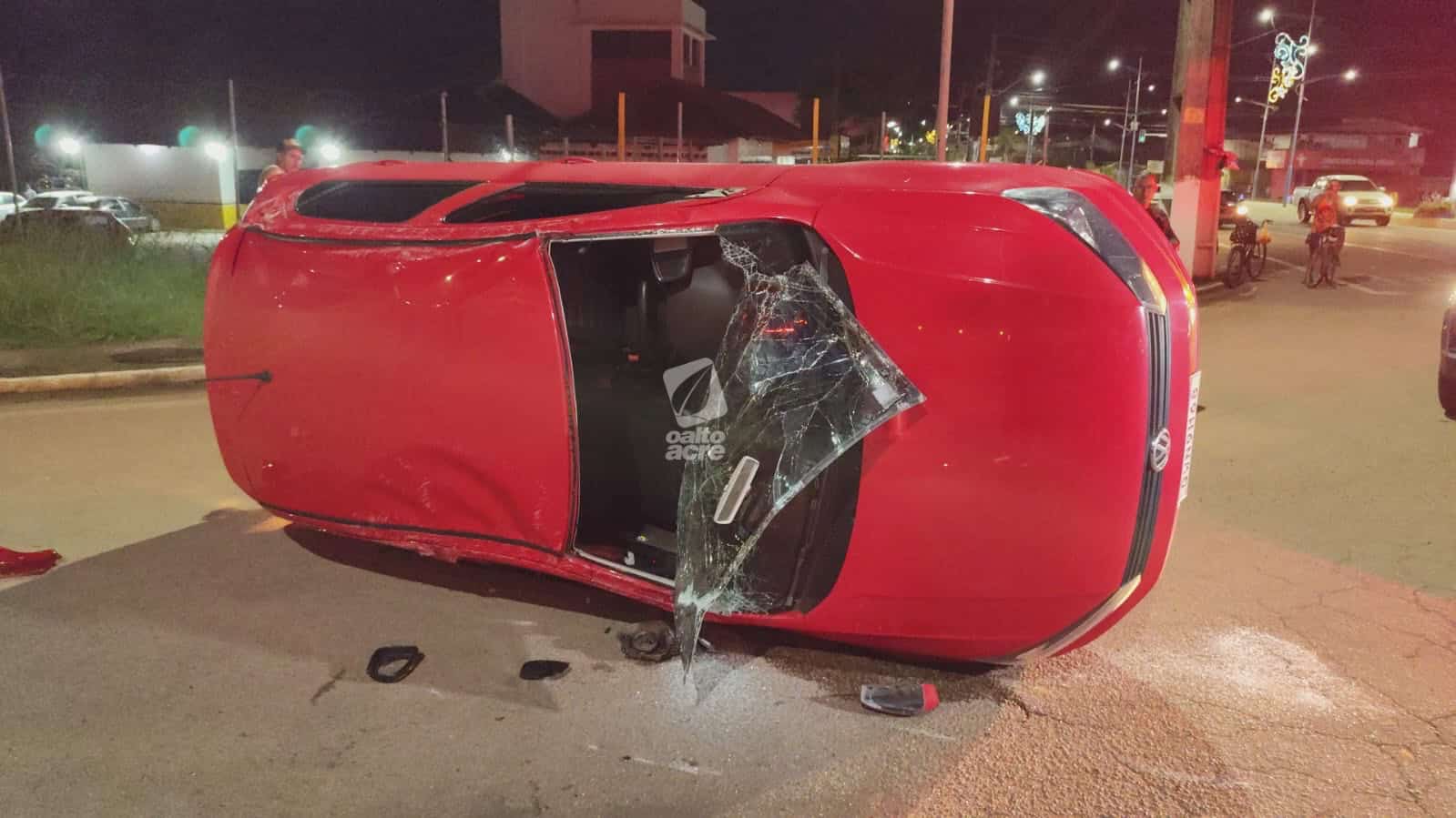 Um acidente de trânsito envolvendo dois veículos deixou duas pessoas feridas e provocou o tombamento de um carro na noite desta segunda-feira (12), na Via Verde, na rotatória da Corrente, trecho da BR-364, no Segundo Distrito de Rio Branco.