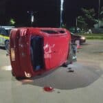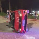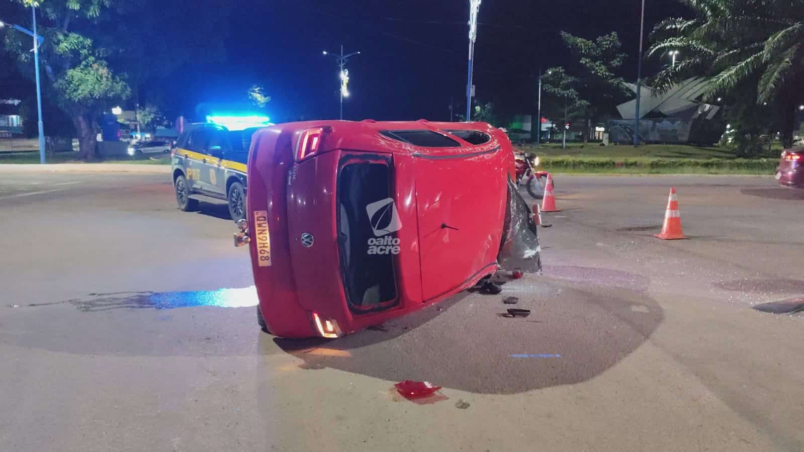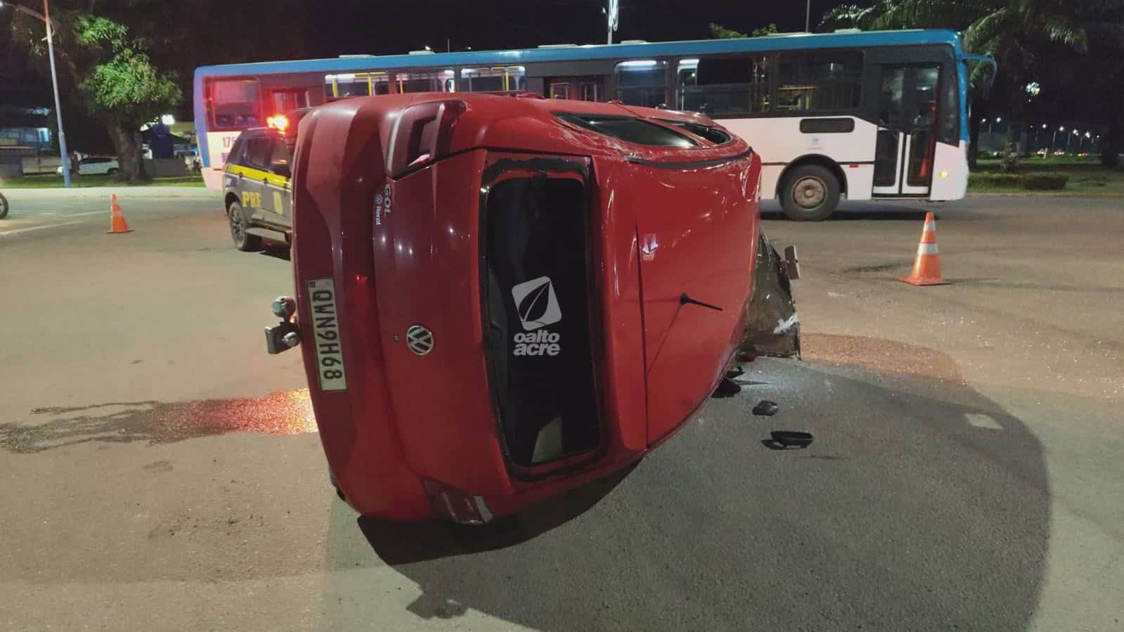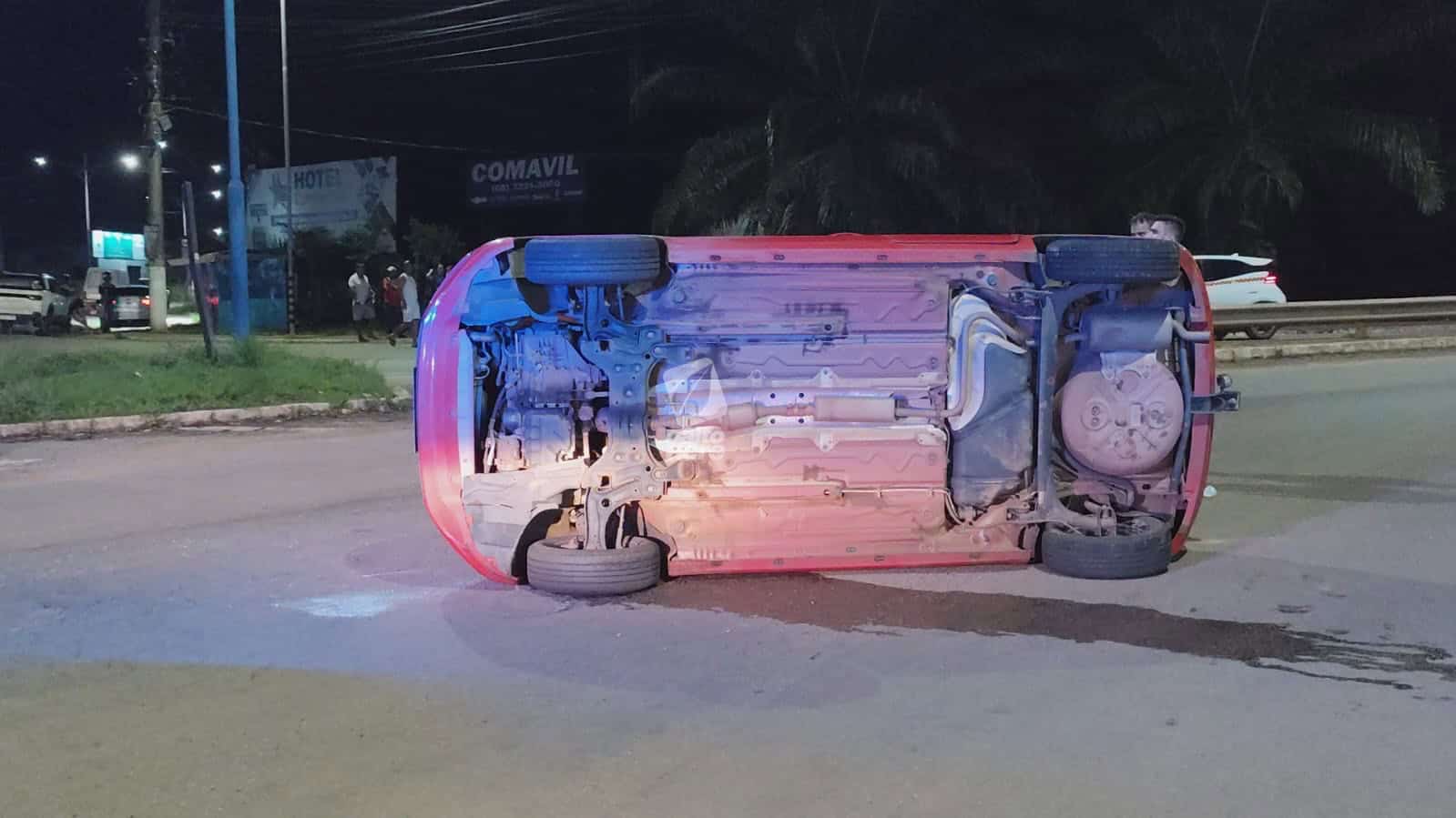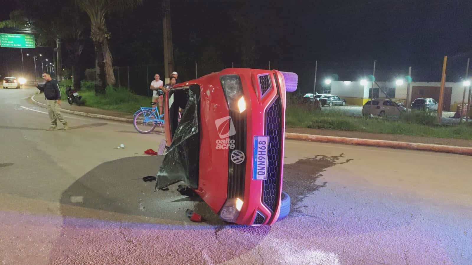 Colisão na Via Verde deixa dois feridos e carro tombado em Rio Branco