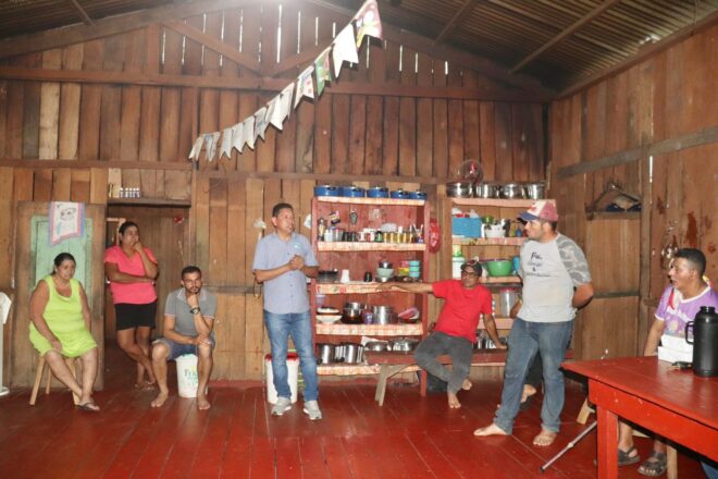 Depois do encontro com os evangélicos, a caravana seguiu para a comunidade do Foquim, distante cerca de 40 quilômetros da sede do município, no ramal do Icuriã. Aliás a região do Icuriã foi uma das que teve atenção especial nos últimos três anos. Das cabeceiras do Rio Iaco até as comunidades mais próximas de Assis Brasil, tem investimentos da gestão de Jerry e Reginaldo.