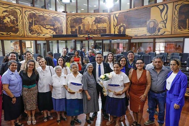 Ela ressaltou ainda a presença notável das irmãs no Acre, incluindo as 76 irmãs italianas que desempenharam um papel crucial na missão, além de reconhecer o impacto global da ordem, que se expandiu para países da América Latina, Ásia e África. “Essa celebração de hoje destaca a riqueza da vida religiosa e seu impacto na comunidade, enfatizando a responsabilidade contínua de manter essa missão essencial. Sou grata a esta Casa de Leis, em especial, ao deputado Gilberto Lira, por essa homenagem que nos traz tanta alegria e nos chama ainda mais para a responsabilidade”, disse.