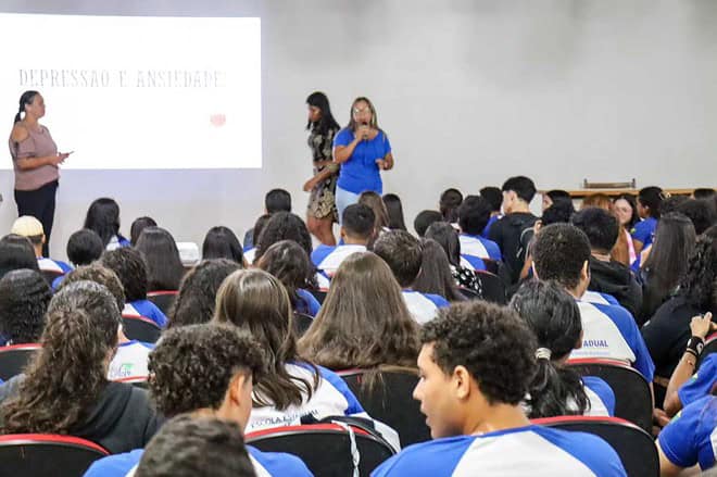 Na manhã desta quarta-feira 08 de novembro, a Secretaria de Saúde, por meio do Centro de Atenção Psicossocial (Caps), promoveu uma palestra informativa na Escola Graça Rocha. O tema abordado foi a depressão e ansiedade.