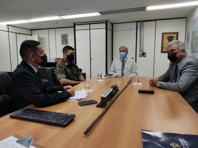 Acompanhado pelo Senador Sérgio Petecão, Jerry foi recebido no Ministério da Defesa pela equipe técnica do Programa Calha Norte. Na ocasião o prefeito e o senador solicitaram a liberação de recursos para que o município possa executar convênios ainda dos anos de 2018, 2019 e 2020. Entre os benefícios estão a pavimentação de ruas, aquisição de máquinas, equipamentos e veículos.