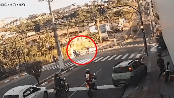 O vídeo de uma câmera de segurança mostra um acidente entre duas motos ocorrido neste sábado, 17, na Av. Lauro Muller, em Cruzeiro do Sul, horas depois da instalação de um semáforo no local. Os faróis luminosos foram instalados devido um alto número de acidentes registrados naquele ponto da avenida.