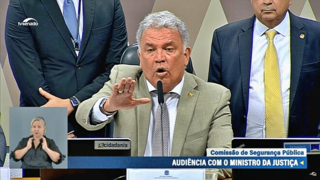 O senador acreano Sérgio Petecão conduzia os trabalhos da Comissão de Segurança Pública, que ouvia o ministro da Justiça Flávio Dino, quando foi chamado de autoritário depois de cortar fala do senador Magno Malta (PL-ES). A reunião que recebeu o ministro de Justiça e Segurança Pública, Flávio Dino, teve discussões acaloradas e frases de impacto ganharam repercussão nacional.