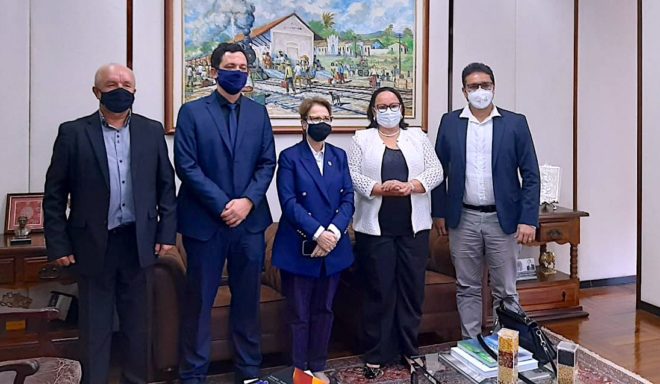 O secretário do Meio Ambiente, a deputada e o presidente do Idaf, agradeceram o trabalho do Mapa em favor da aprovação do parecer pela Comissão Científica das Organização Mundial de Saúde Animal(OIE) do pleito de certificação internacional de área livre de aftosa sem vacinação para o Estado do Acre e outros entes federados integrantes do Bloco 1.