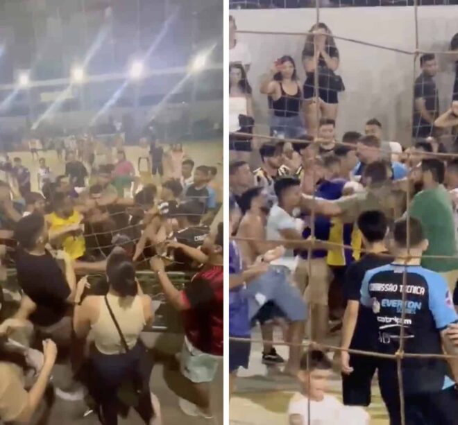 Foi quando iniciou uma briga generalizada, envolvendo jogadores e torcedores de ambos os lados. Imagens feitas por populares publicadas em grupos de redes sociais, mostra a confusão até que os ânimos se acalmassem