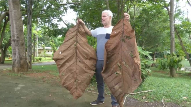 Árvore foi descoberta após engenheiro do parque receber folha gigante — Foto: Rede Amazônica/Reprodução