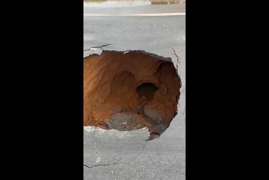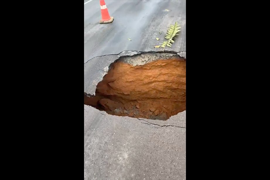 Uma cratera registrada na BR-317, nas proximidades da Serraria dos Padres, em Xapuri, neste sábado (28), acendeu o alerta para risco de rompimento da rodovia.