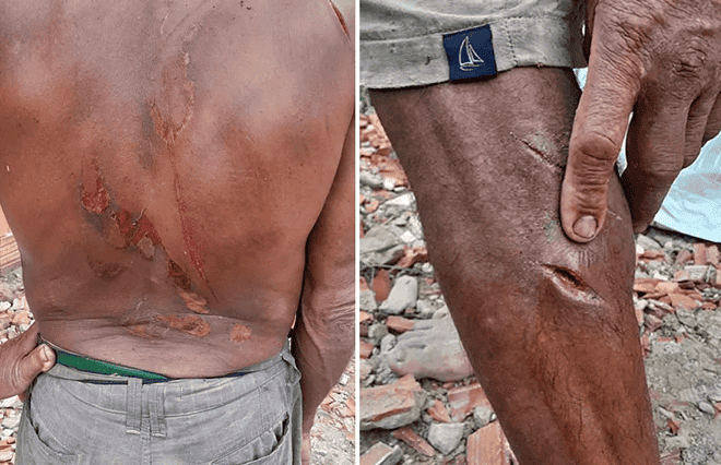 O homem disse que os 5 homens chegaram ao local onde ele estava, com bebida alcoólica e passaram a se desentender. Quando ele já ia embora, os 5 correram em sua direção e começaram a espancá-lo. Lhe bateram com as mãos, com um terçado e usaram uma motosserra para lhe cortar. “Eles ligaram a motosserra e disseram que iriam rolar o meu pescoço. Eu pedia que eles para que eles parassem, mas eles não paravam. Me bateram e torturaram por 30 minutos e foram embora levando meu dinheiro”, relata a vítima, que contou conhecer todos os autores há muito tempo.