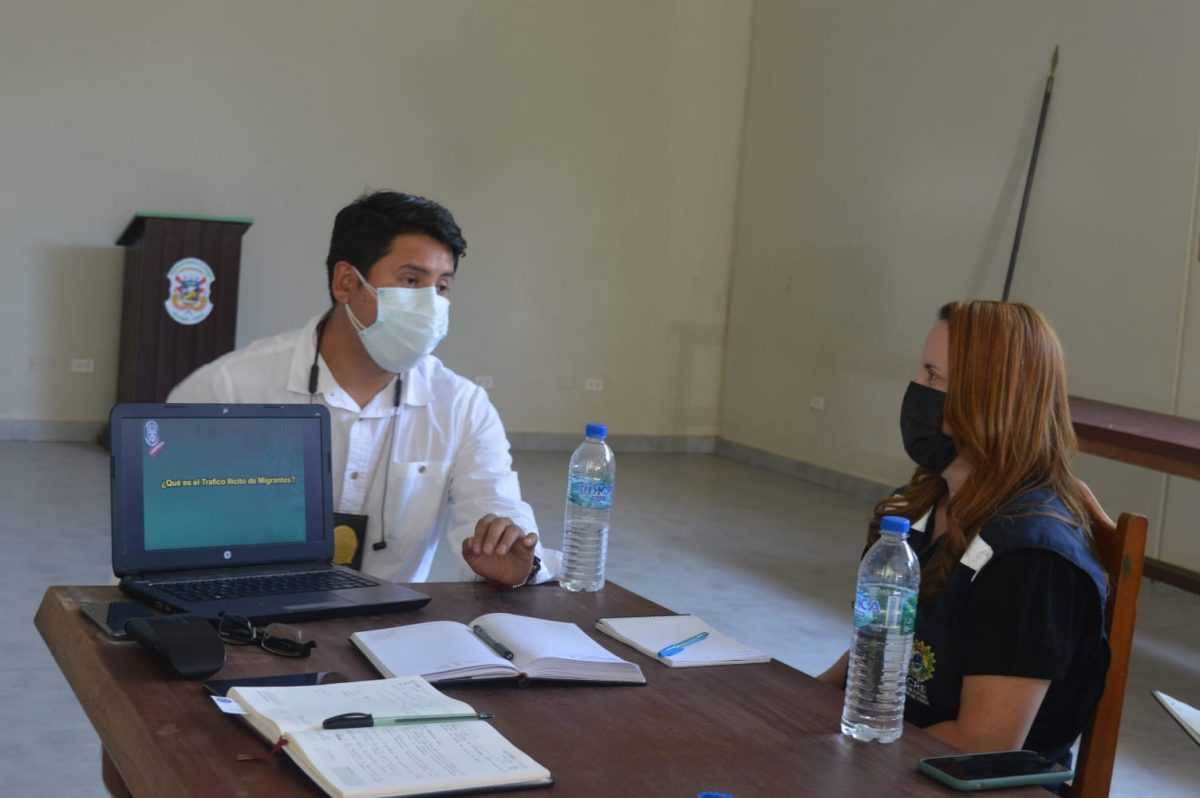 O coronel da Polícia Nacional de Peru, Manuel Oswaldo Diaz Barco, chefe da divisão de tráfico ilícito de migrantes, acompanhado de policiais que trabalham combatendo o tráfico de pessoas, participou como parte integrante da conversa, dando a perspectiva da segurança peruana.