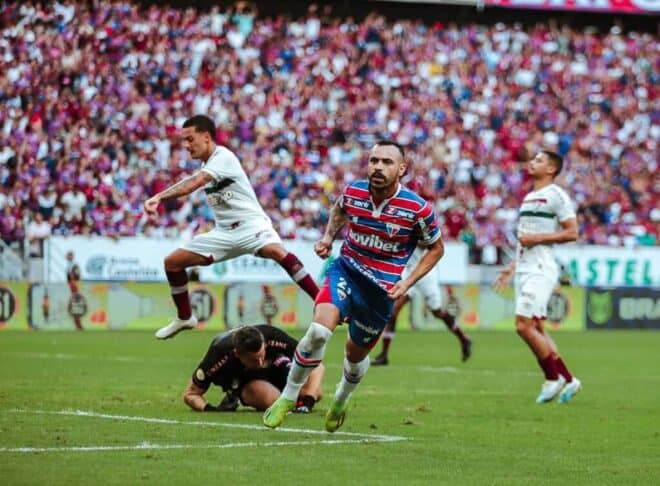 O Campeonato Brasileiro tem um novo líder. Em uma partida movimentada e com seis gols, o Fortaleza “roubou” a ponta do Fluminense ao ganhar por 4 a 2, na tarde deste sábado (29), na Arena Castelão, em Fortaleza (CE), pela terceira rodada.