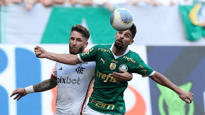 O Palmeiras voltou ao ataque dez minutos depois. Endrick aproveitou o vacilo de Pulgar e arriscou de fora. A bola saiu raspando a trave. Aos 36, De La Cruz teve uma boa chance de colocar os cariocas na frente, em tiro livre na entrada da área, mas chutou por cima.