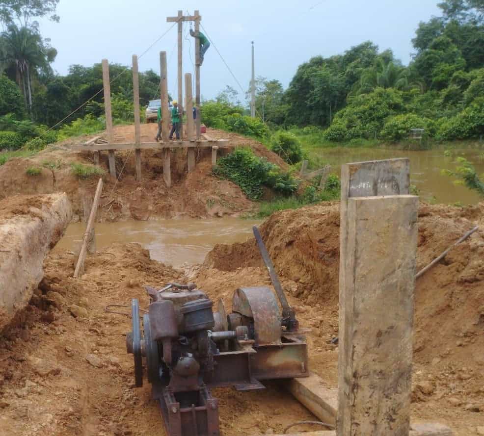 O governo do Acre, por meio do Departamento de Estradas de Rodagem, Infraestrutura Hidroviária e Aeroportuária (Deracre), está construindo nesta segunda-feira, 16, uma ponte sobre o igarapé Miterrari, no km 6 do Ramal do Mucura, em Plácido de Castro. A nova ponte de madeira tem 18 metros de extensão e tem sido construída com estrutura estaqueada, que garante maior durabilidade durante todo o ano, no trajeto dos produtores rurais.