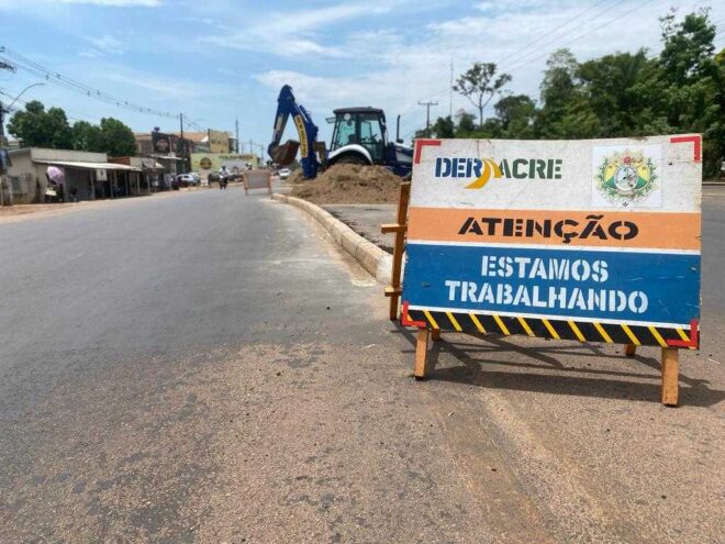 O governo do Estado, por meio do Departamento de Estradas de Rodagem, Infraestrutura Hidroviária e Aeroportuária do Acre (Deracre), segue nesta segunda-feira, 16, com trabalhos de implantação de rotatória na AC-40, no trecho do Parque Chico Mendes, em Rio Branco.
