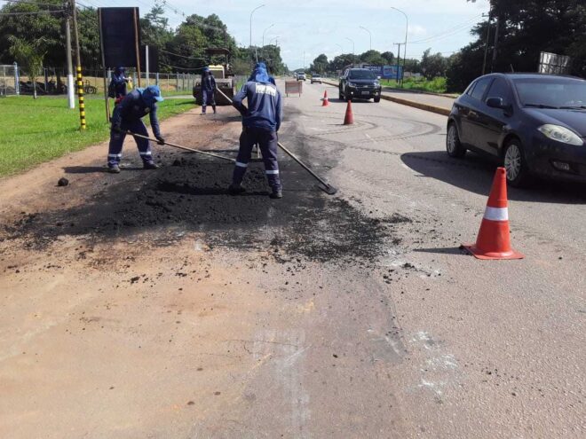 De acordo com o diretor de Operações da autarquia, Ronan Fonseca, os agentes técnicos do departamento realizam os trabalhos, promovendo reenquadramento dos pontos danificados, retirada e limpeza do pavimento quebrado, impermeabilização, aplicação e compactação da nova massa asfáltica.