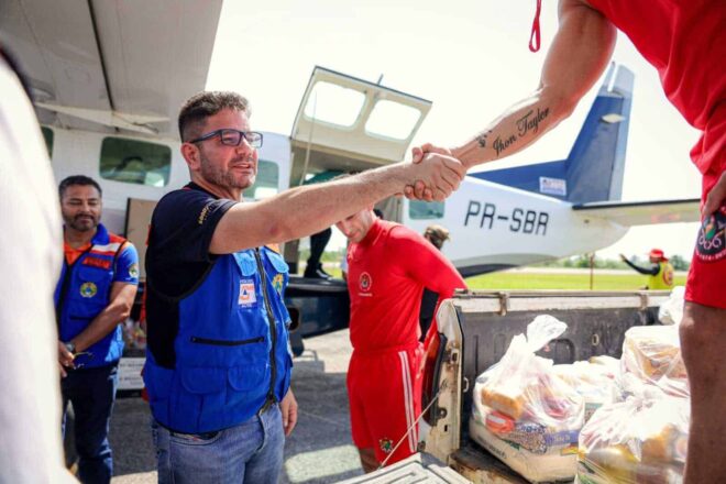 No aeroporto, o governador também falou dos suprimentos enviados para o Jordão com 100 cestas básicas e 50 kits de limpeza. Os mantimentos foram enviados por meio da Secretaria de Estado de Assistência Social e Direitos Humanos (SEASDH).