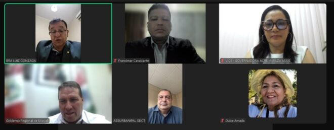 Em videoconferência realizada no final da tarde desta quinta-feira, 20, a vice-governadora Mailza Assis defendeu as rotas de integração entre o Acre e o Peru como ações estratégicas para o fortalecimento da economia regional. A reunião remota contou com a participação do governador da região de Ucayali, Manuel Gambini Rupay, o titular da Secretaria de Estado de Indústria, Ciência e Tecnologia (Seict), Assurbanípal Mesquita, e o presidente da Assembleia Legislativa do Estado do Acre, Luiz Gonzaga.