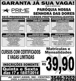 Atenção Brasiléia, Epitaciolândia e toda região a Paróquia Nossa Senhora das Dores de Brasiléia está promovendo cursos profissionalizantes por apenas R$ 39,90 mensais. Isso mesmo R$ 39,90. Os cursos são:
