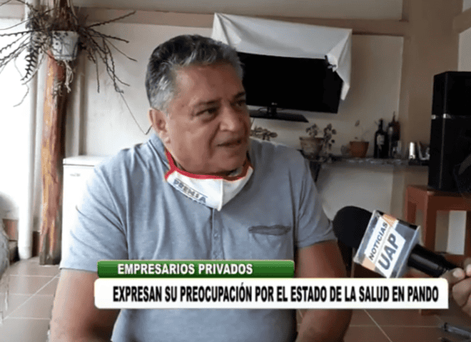 Durante a tarde desta segunda-feira, dia 20, o empresário da comunicação da cidade de Cobija, capital do estado de Pando, que faz fronteira com o Brasil através do Acre, senhor Álvaro Piñedo Suárez, que também é Diretor Executivo da Federação de Empresário Privados de Pando, fez uma denuncia sobre a saúde que teria entrado em colapso no lado boliviano.
