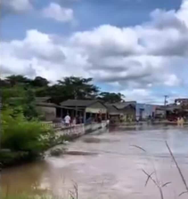 Isolamento total – As águas subiram a ponto de cortar as vias terrestres que ligam a comunidade tanto ao território boliviano quanto ao Brasil.