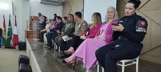 Autoridades das forças policiais do Peru, Bolívia e Brasil marcaram presença, ao lado de representantes de diversas instituições, incluindo o Gefron, Polícia Federal, Polícia Civil, Polícia Militar, além da presença marcante da Lei Maria da Penha e de estudantes engajados na causa.