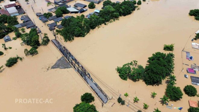 Após quase uma semana, contando a partir da sexta-feira passada, dia 23, o rio acre que passou do nível de 2015 – que era de 15,55cm, e agora registra uma nova cheia histórica neste ano de 2024, chegando na marca de 15,58cm.