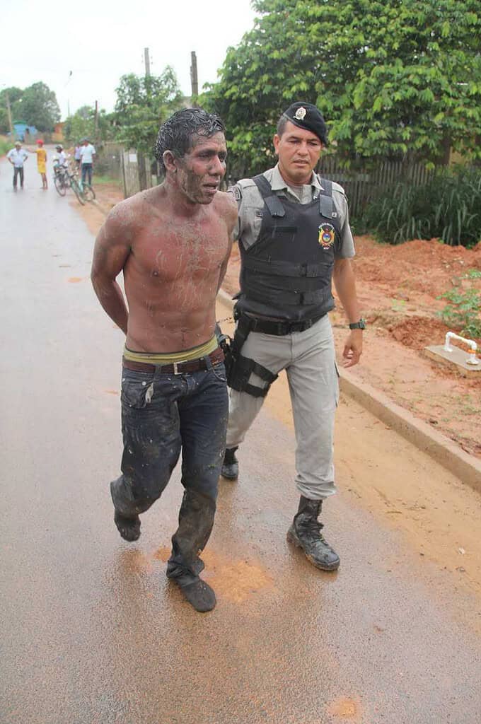 Após perseguição, meliante foi preso no barranco do rio Acre e se descobriu que seria o enteado da vítima – Foto: Alexandre Lima