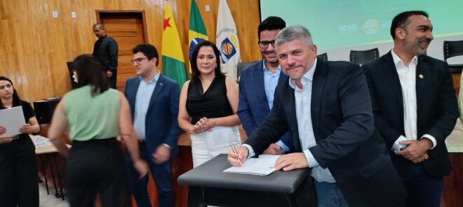 Com o objetivo de promover a padronização e digitalização da gestão documental e dos processos administrativos em todo o estado, o governador do Acre, Gladson Camelí, assinou, nesta sexta-feira, 11, um termo de cooperação em que, por meio da Secretaria de Estado de Administração (Sead), o governo vai dar suporte e orientar os 22 municípios na implementação do Sistema Eletrônico de Informações (SEI).