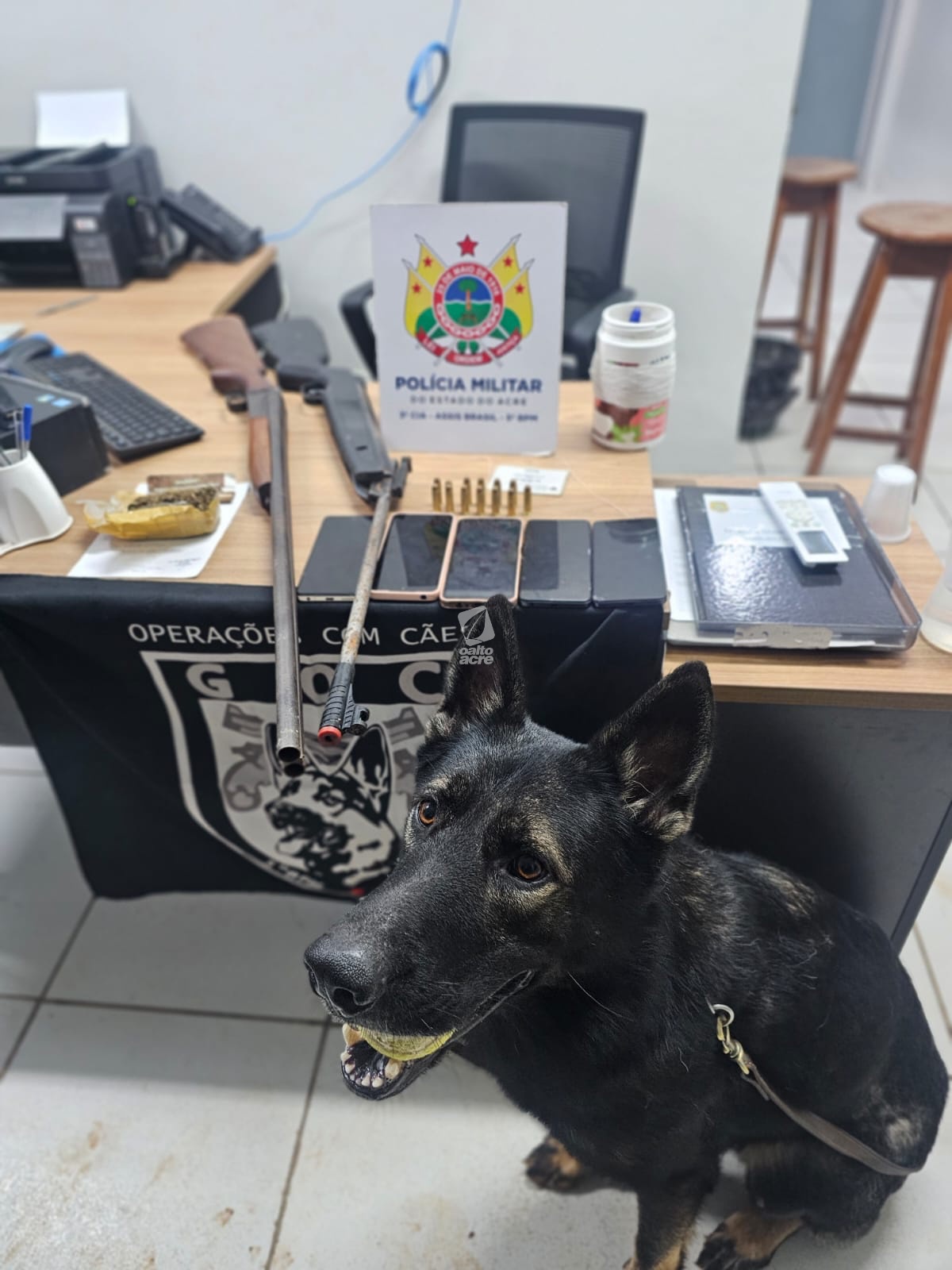 Uma operação da Rádio Patrulha da 3ª Companhia do 5º CPM, com apoio do Grupamento de Operações com Cães, resultou na apreensão de armas de fogo, munições, entorpecentes e na condução de adultos e menores suspeitos de envolvimento com organização criminosa, no município de Assis Brasil, interior do Acre.