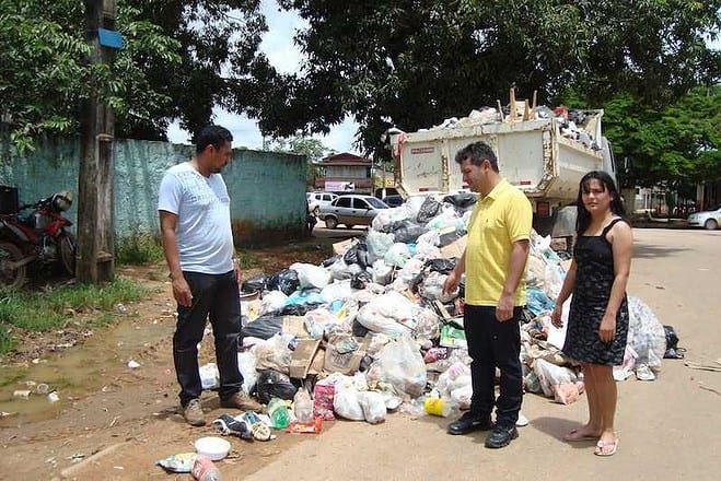 O prefeito da cidade de Epitaciolândia, André Hassem, juntamente com os Secretários de Meio Ambiente e Obras visitando alguns bairros para ver de perto a real situação referente ao lixo que estava tomando conta das ruas. A coleta havia sido parada antes das datas festivas de final de ano pela gestão anterior.