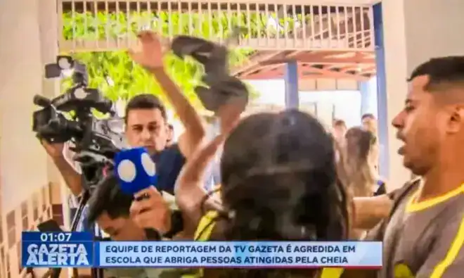 Uma equipe de reportagem da TV Gazeta, afiliada à RecordTV no Acre, foi vítima de agressão enquanto realizava a cobertura jornalística na Escola Municipal Georgete Eluan Kalume, localizada no bairro Cadeia Velha, em Rio Branco, na manhã desta segunda-feira, 5. O local funciona como ponto de acolhimento temporário para famílias atingidas pela cheia do Rio Acre.