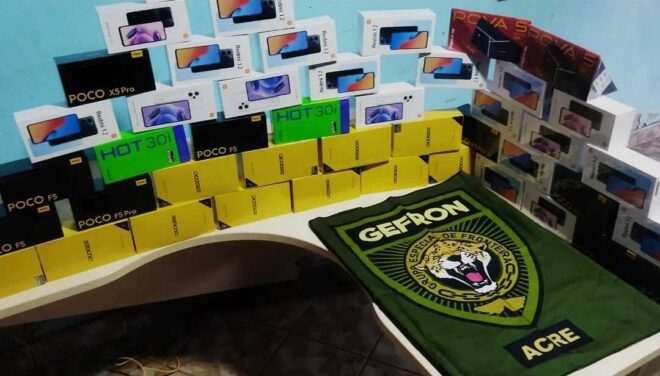 Em uma operação coordenada no âmbito da Operação Hórus do Programa Guardiões das Fronteiras, realizada neste domingo, dia 4, as equipes policiais do Grupo Especial de Fronteiras (GEFRON) desempenharam um papel fundamental na interceptação de uma tentativa de contrabando na região, resultando na apreensão de 45 aparelhos celulares. O incidente ocorreu nas proximidades do município de Epitaciolândia, no interior estado do Acre.