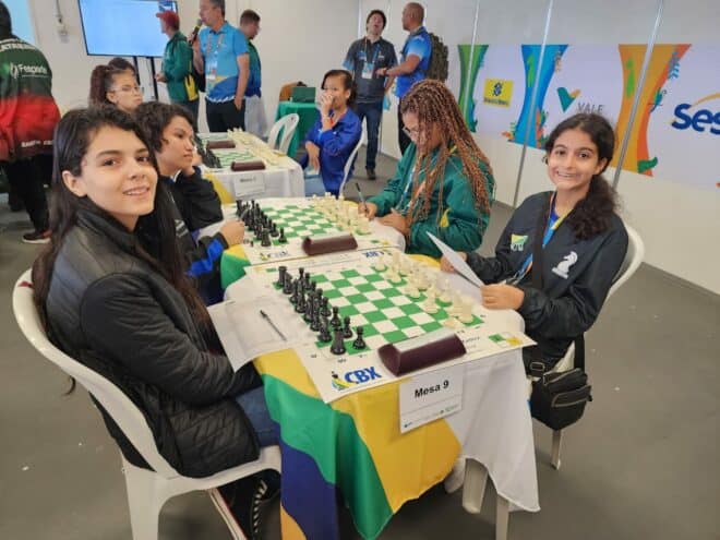 Entre as modalidades que o Estado do Acre levou para os Jogos Escolares Brasileiros (JEBs), competição que acontece no parque olímpico da Barra da Tijuca, na cidade do Rio de Janeiro, está o Xadrez, que teve quatro atletas, um do Colégio Meta e outros três do Colégio Anglo.